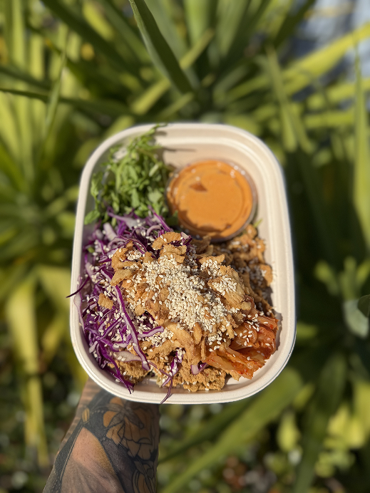 Albacore Tuna (baked in-house), Carrots, Red Cabbage Slaw, Pickled Ginger, Sushi Rice with a Wasabi Tamari Sesame Dressing.